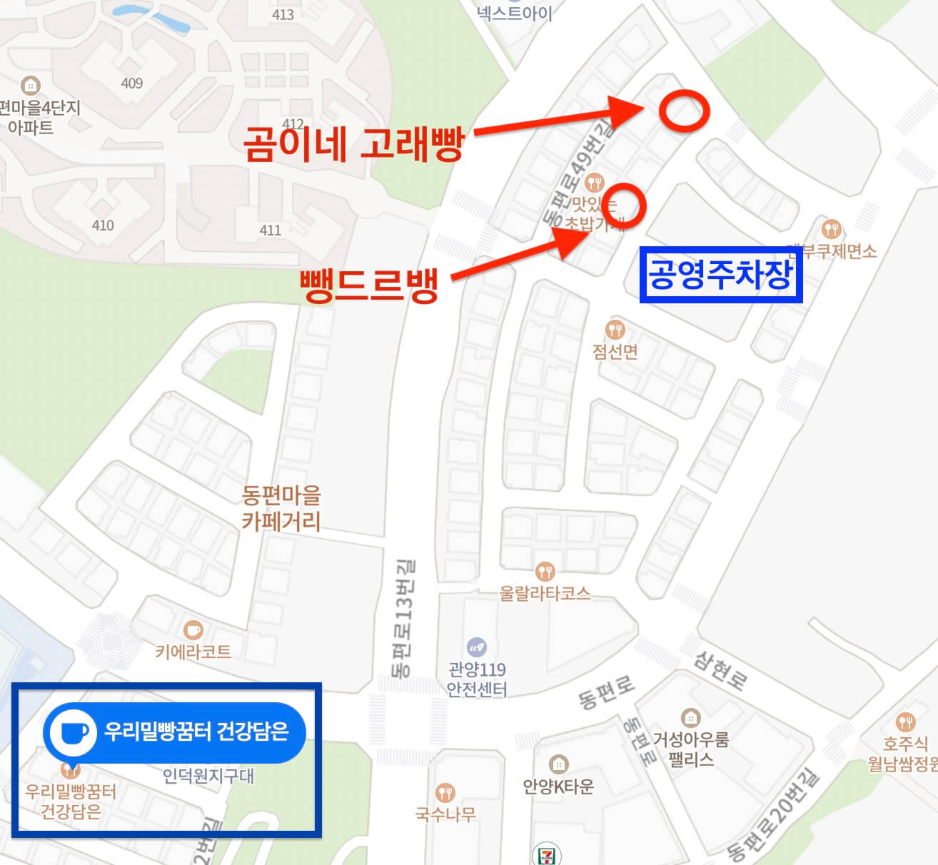동편마을에는 곰이네 고래빵집처럼 유명하지는 않지만 완전 실력파 강추 빵집들이 더 있어요. 개인적으로 <뺑드르뱅>과 <우리밀 빵굼터 건강담은> 두 곳을 완전 추천합니다. 특히 뺑드르뱅 빵은 맛으로나 퀄리티로나 고래빵집 뒤지지 않는(개인적으로는 더 좋게 느껴지는) 곳인데 잘 안알려졌어요. 여기 단점이 하나 있는데 목요일이랑 토요일 밖에 영업을 안합니다안 합니다. 오픈시간은 8시에서 11시! 우리밀 빵굼터 건강담은 빵집입니다. 버터,우유,계란을 안쓰는 소화가 잘되는 빵을 컨셉으로 하는 곳인데 건강한 맛이면서도 맛을 놓치지 않는 곳입니다. 이 두곳 적극 추천합니다.