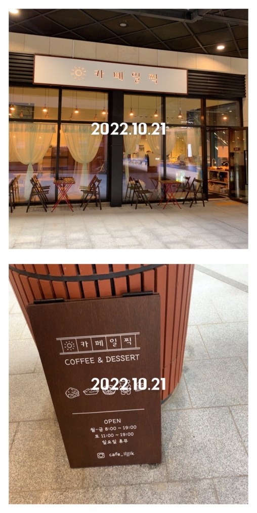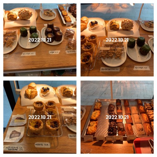 두번째 빵집은 '카페 일찍'이라는 곳입니다. 여기는 ak플라자 1층 입구 앞에 위치해 있습니다. 여기는 에그타르트, 쿠키, 까놀레, 휘낭시에 등 작고 아담한 사이즈의 빵을 팔고요 옆에는 커피 마실수 있는 공간이 cozy 하게 있습니다.