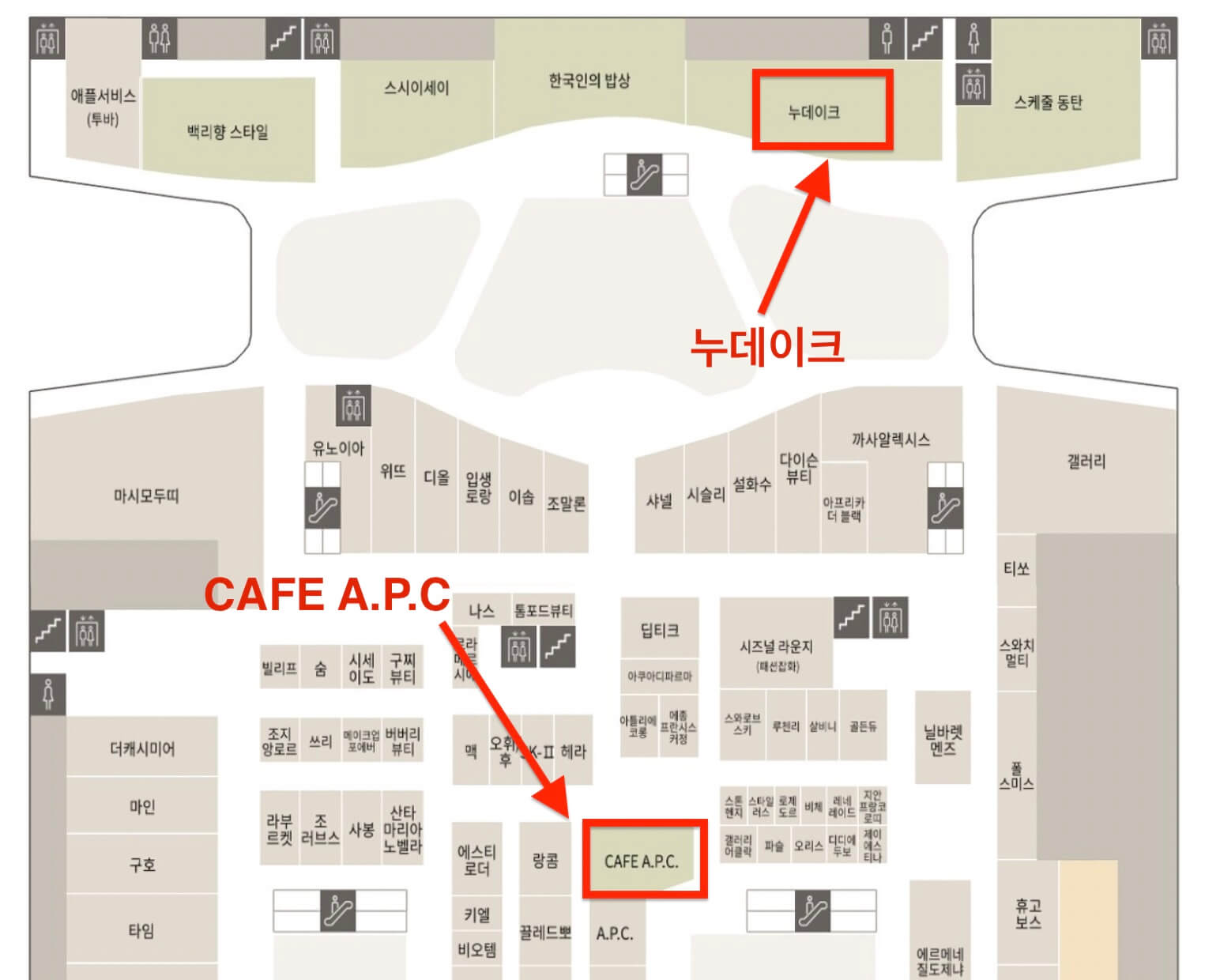 - 누데이크(2층) : A.P.C와 마찬가지로 선글라스 샵인 젠틀몬스터가 운영하는 카페입니다. 콜로 세오, 피크 케이크, 이 2가지 메뉴가 호평을 받고 있습니다.