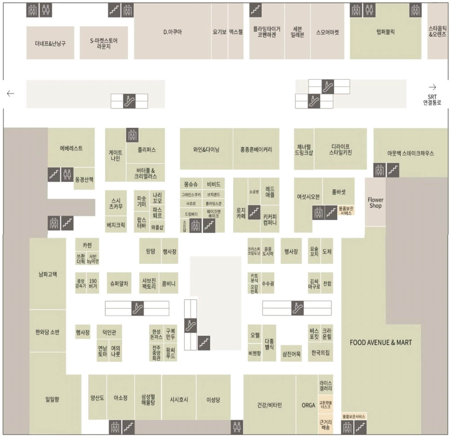 먹을 데는 지하 1층에 몰려있고 추천식당으로 많이 언급되는 연남 토마, 꽝시 푸드(태국 음식), 베지 크릭(대만 음식)인데 사실 이미 한 따까리 하는 식당만 큐레이션 된 곳이라 어느 곳을 가도 평타는 친다. 땀 땀(베트남 쌀국수) 같은 경우 강남에서는 아직도 줄 서서 먹는 일이 허다한 곳이고, 중국음식점인 일일향도 압구정 본점 이외에도 분점이 꽤나 있는, 맛으로는 이미 검증된 곳이다. 개인적으로 한성 돈가스 추천한다. 여긴 신사동이 본점인 곳인데 여기도 오래전부터 맛집으로 사람들이 끊이지 않던 곳이다. 너무 많아서 어디 갈까 고민되면 1층에는 쉑쉑으로 고고.