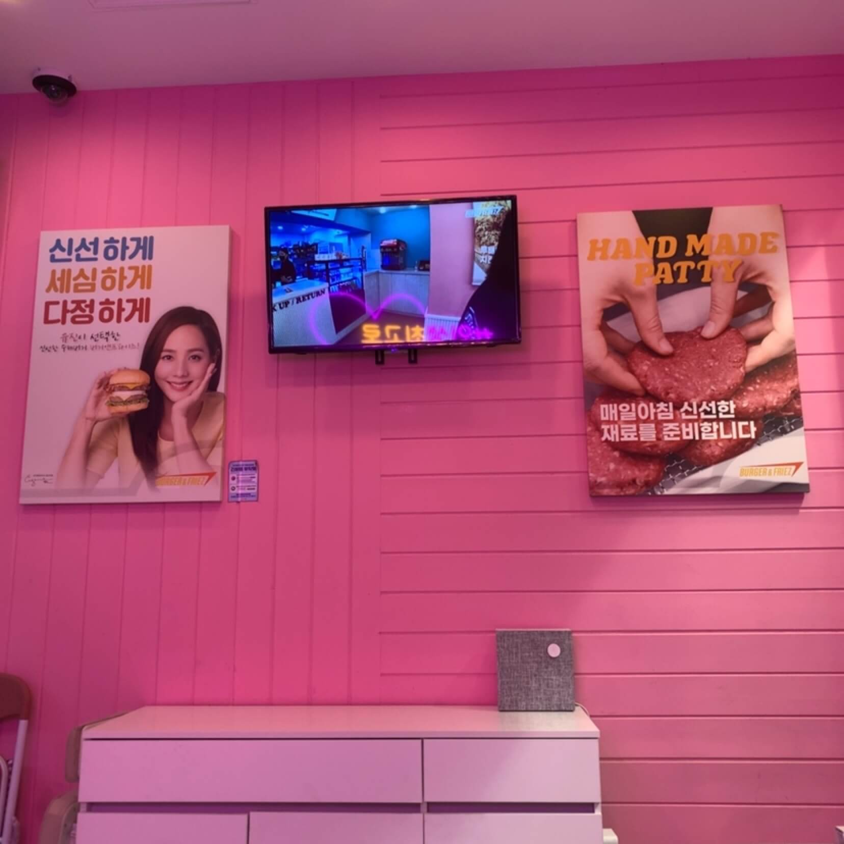 음식이 나올 동안 매장을 둘러보니 쯔양이 버거앤프라이즈 먹방 찍는 거 틀어놓고, 브랜드 홍보대사도 SES 유진을 쓴 것 보니 마케팅에 신경을 많이 쓰는구나 싶었습니다.