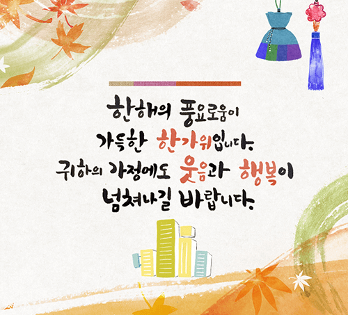 3. 그 동안 함께하지 못했던 소중한 가족과 풍성한 한가위처럼 즐겁고 여유로운 추석연휴 지내세요.