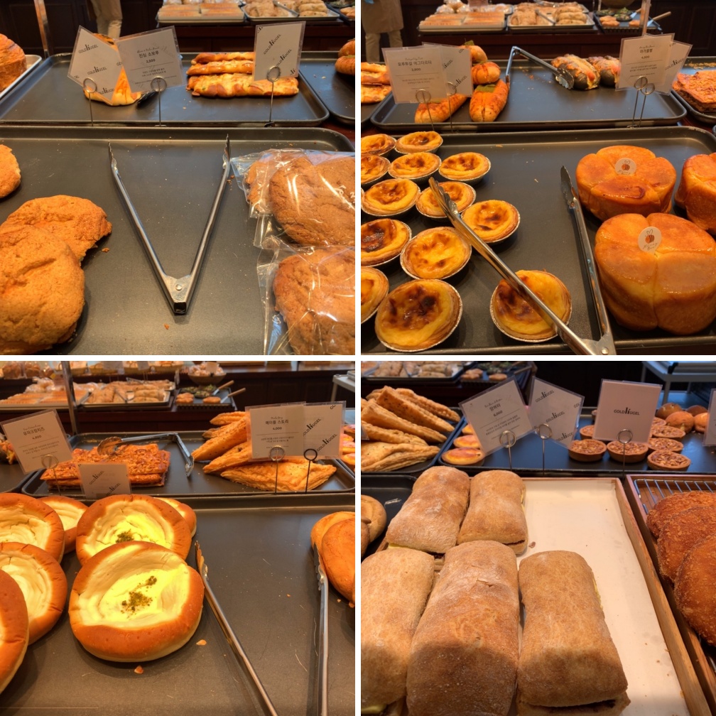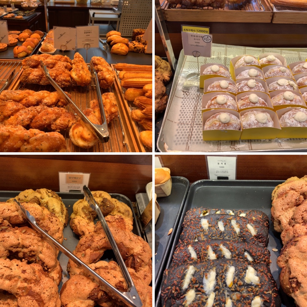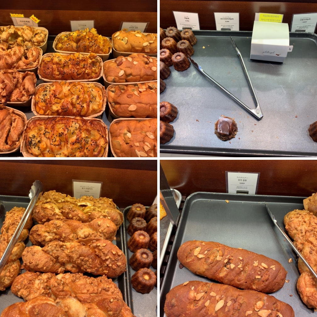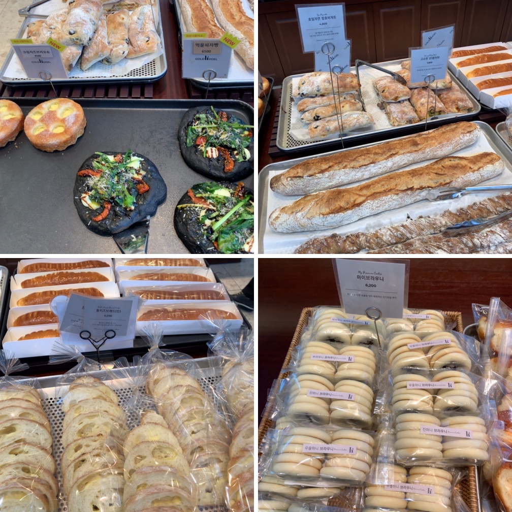 바게트 경우 바게트를 썰어주는 직원분이 따로 계십니다. 친절하게 응대해 주십니다. 가격이 꽤 세죠. 가장 저렴한 슈크림빵이나 단팥빵이 2,500원입니다. 그외에 빵들은 5~9천 원 내외가 제일 많습니다.
