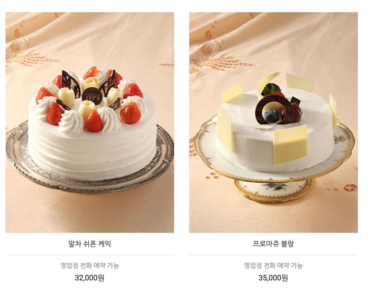 사람들이 잘 모르는데 옵스 케이크 정말 괜찮습니다(개인적으로 자주 먹음). 옵스가 다른 빵 가격은 사악한데 케이크만큼은 굉장히 준수하죠(빵 가격 때문에 더 그렇게 느껴질 수도) 특히 생크림이 느끼하지 않고 깔끔하면서 담백한 고급 생크림을 쓰는 게 포인트입니다. 케이크 좋아서 먹다가도 생크림 싫어서 안 먹게 되는 타입이라면 무조건 시도해볼 만한 곳. 단점은 역시 공간적 제약. 서울과 양산(부산 근처)에 매장이 집중돼있습니다. 다른 베이커리처럼 크리스마스 특별 메뉴는 없지만 예약과 픽업 경쟁이 다른 유명 베이커리만큼 힘들지 않다는 장점이 있습니다. 케이크 가격은 평균 3만 원 초중반대.