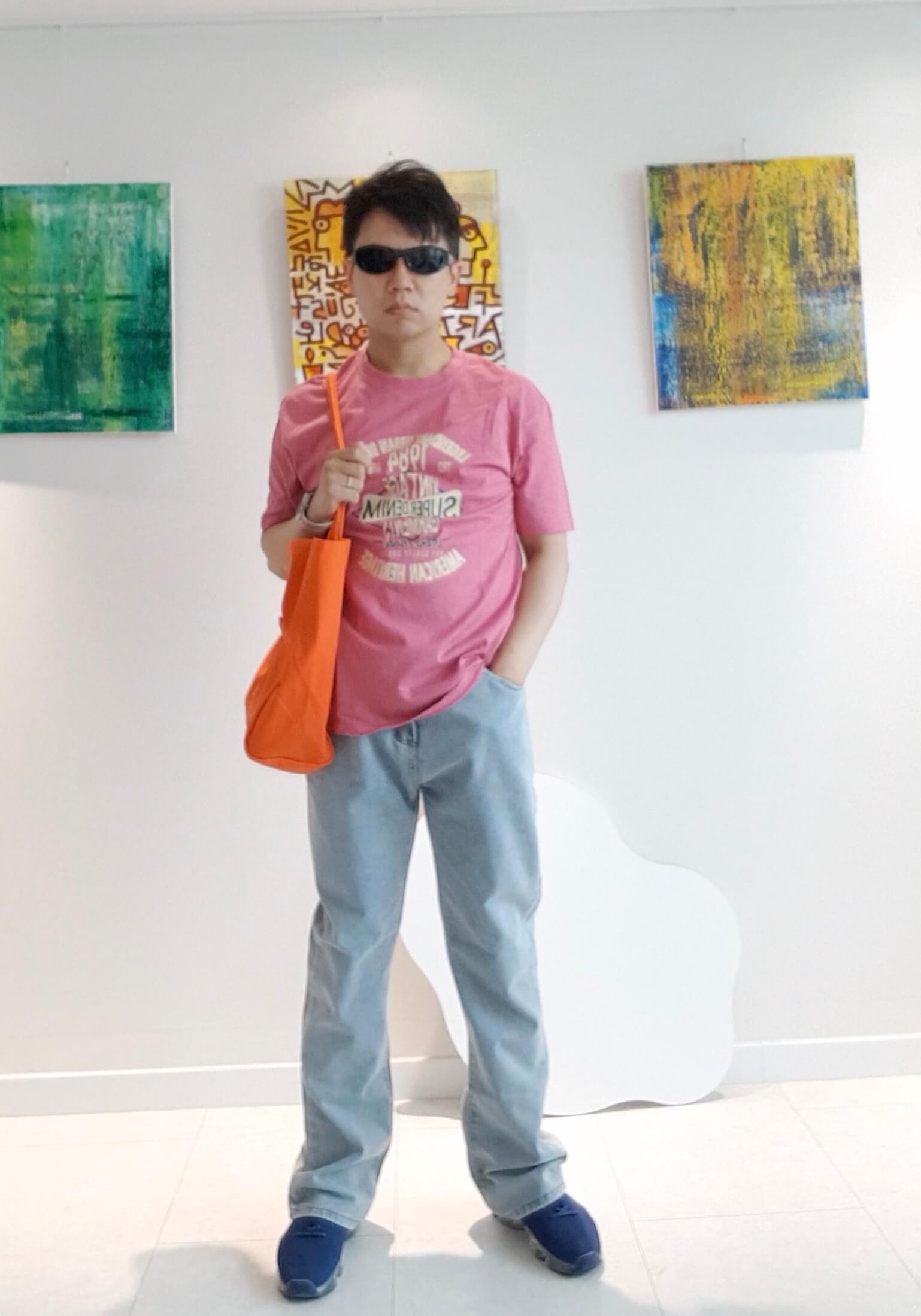 머리에서 발까지 5만 원으로 맞춘 남자 여름 스트리트 옷 풀 셋업입니다. 핑크 빈티지 티셔츠 13,000원 세미 부츠컷 청바지 1만 5천 원,